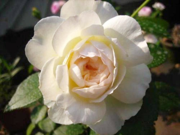 月季波萊羅一次開(kāi)花可達(dá)四五十朵,一年四季均可開(kāi)花,且花朵非常厚實(shí),外圍呈白色,近白色或白色混合,里面還透著一點(diǎn)點(diǎn)嫩粉色。等到波萊羅花芯微露時(shí),就是它的好觀賞時(shí)刻。
